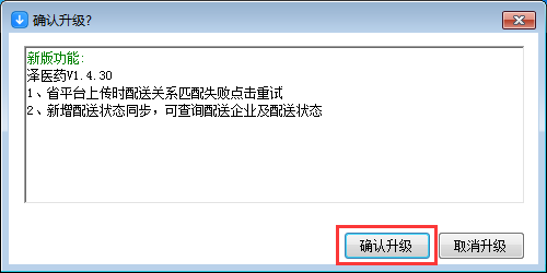 【確認(rèn)升級(jí)?】提示窗口,對(duì)當(dāng)前版本升級(jí)內(nèi)容的簡(jiǎn)要說明;點(diǎn)擊【確認(rèn)升級(jí)】繼續(xù);