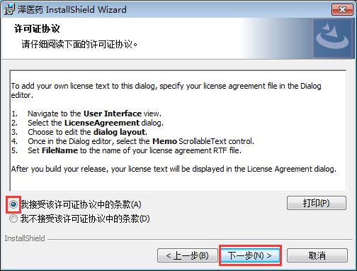 許可協(xié)議點(diǎn)擊【我接受該許可協(xié)議中的條款】繼續(xù)安裝;