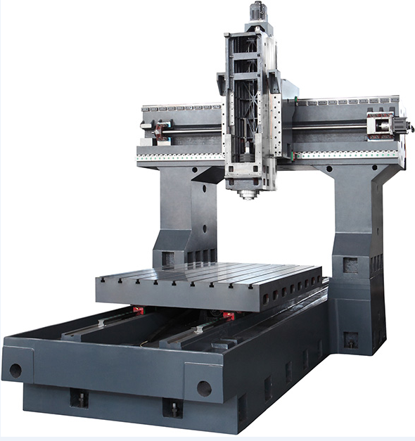 NB系列龍門加工中心的XY軸采用無爬行運動高精度、高剛性、壽命長的結(jié)構(gòu)。橫梁上的主軸頭導(dǎo)軌采用幅度寬、高剛性的矩形斷面形狀的滾珠導(dǎo)軌。